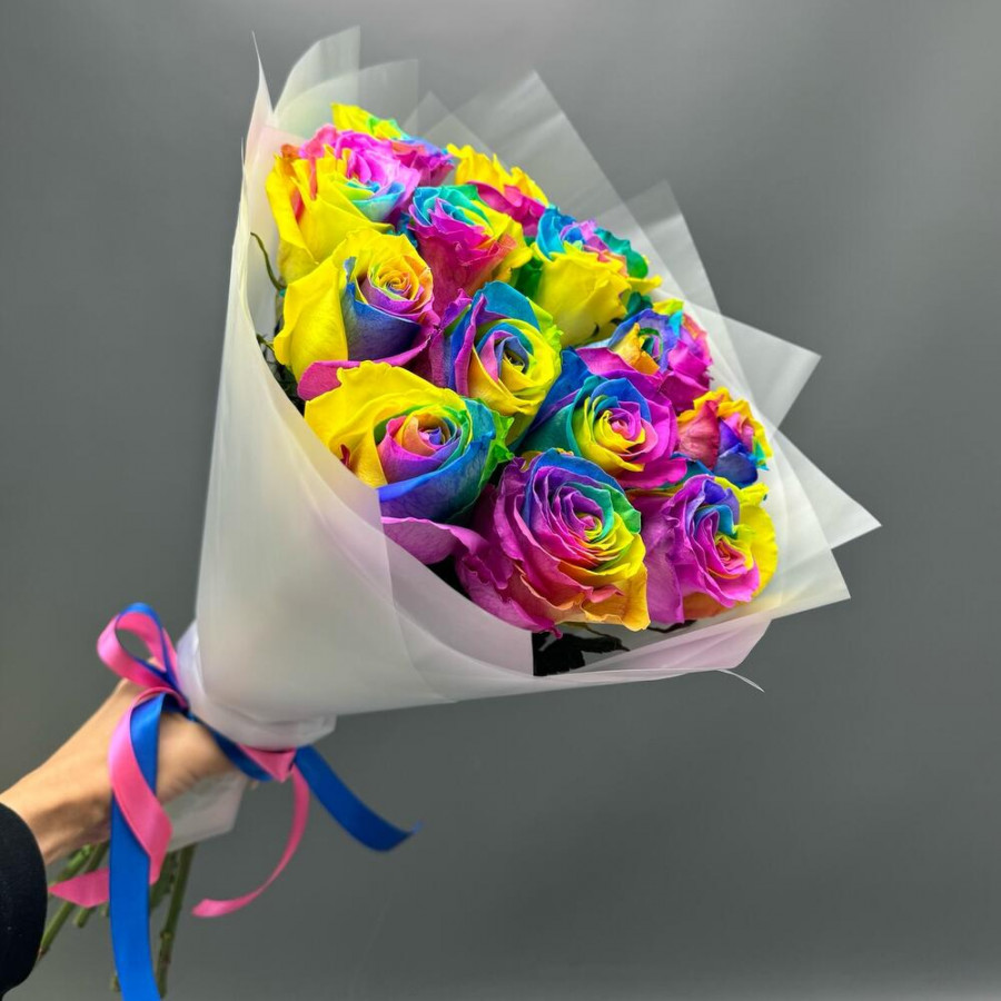 Часто выбирают Розы Радужные розы 15 роз